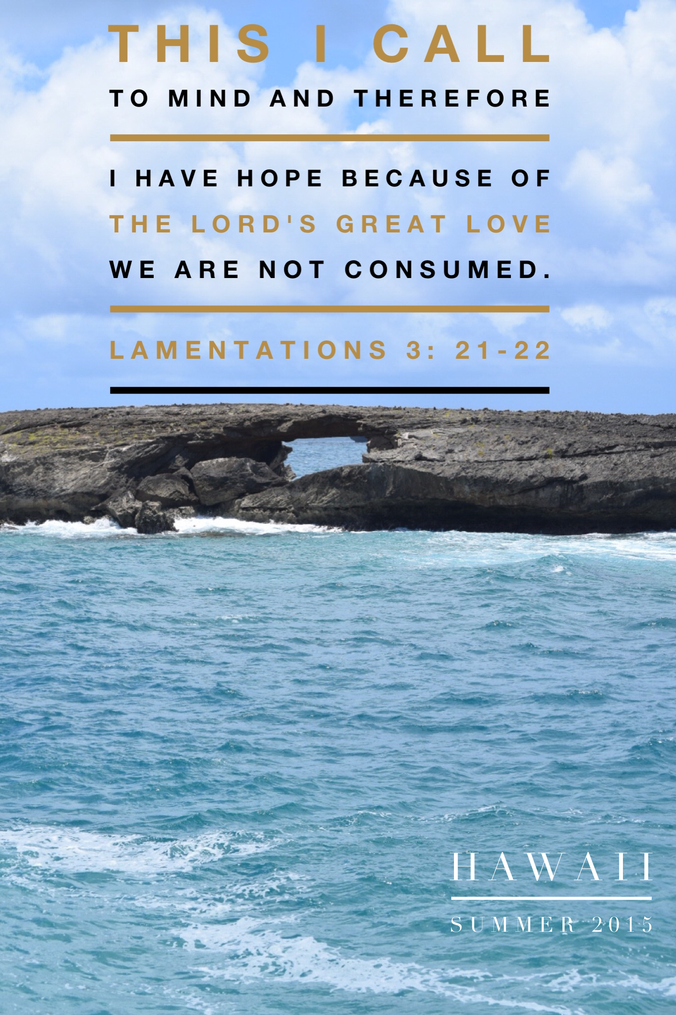 Lamentations 3:21-22 This I call to mind and therefore I have Hope; Because of the Lord’s great love we are not consumed. Just like Jeremiah, I can have hope in Jesus because even in my suffering I will not be consumed. He will be enough every day and every morning His mercies will be New! Because Jesus loves me, and because of His never-failing compassion I have Hope!